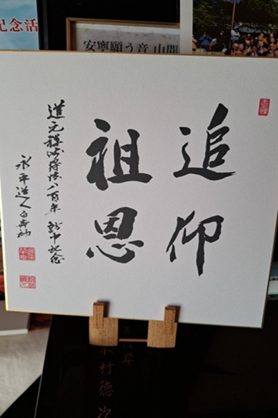 ▲道元禅師様中国天童山で得法900年を偲び、永平寺南澤禅師様ご揮毫の色紙