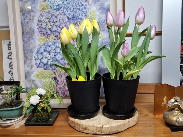 ▲毎年檀家のY様が下さる砺波のチューリップ
