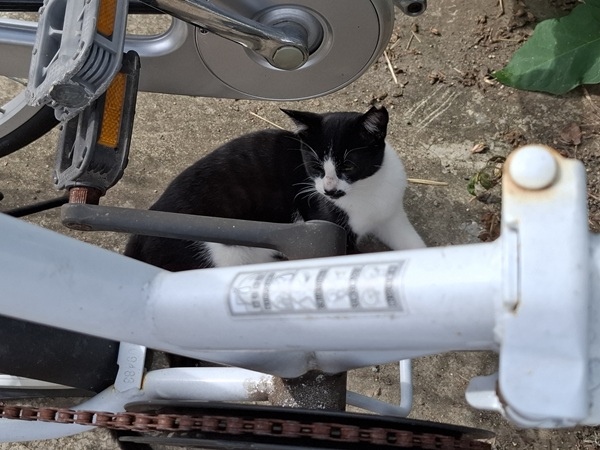 このような中に、思わぬ来客がありました。境内に時々顔を出していた野良猫が物置小屋の下に仔猫を3匹連れて来ていました。孫が朝夕通学時に餌を与えていたらしく、チョコ、チョコと姿を見せるようになり、いつの間にか2匹になってしまいましたが、一年前に亡くなった犬の代わりかペット化しました。今では家族が代わる代わる餌をやるので、スクスク成長して、元気に境内を飛び回っています。保護センターの方が去勢してくださり、鼠や外敵退治にもなるので、家族の一員として、活躍してもらう事にしました。