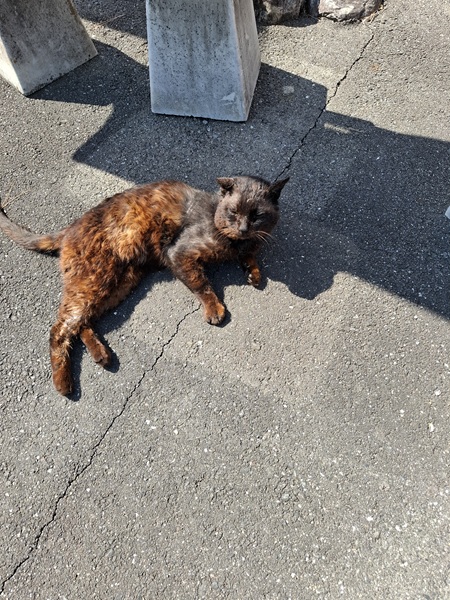 人懐こい黒くん?茶色君 陽気につられて、ゴロンして、お出迎え猫🐱