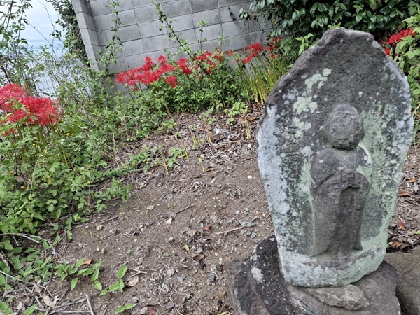 暑さのためでしょうか、今年は彼岸花の咲きが遅いです。いつもですと、お中日には境内が満開となりますが、中日1日過ぎの今朝やっと境内が賑やかになりました。